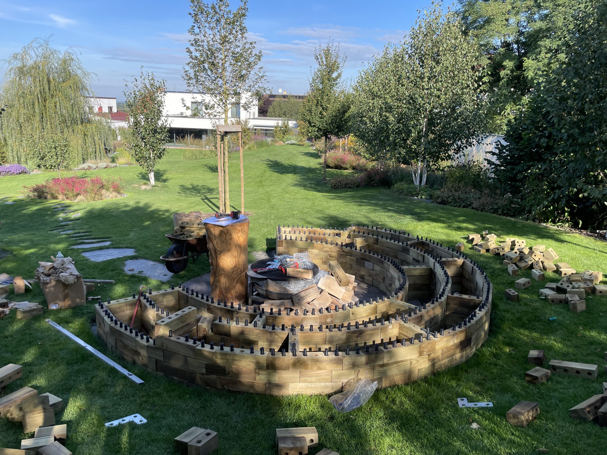 Zákazník nás oslovil s přáním vytvořit kruhové posezení okolo ohniště, které by bylo nejen pohodlné a trvanlivé, ale i esteticky zapadlo do jeho zahrady. Protože jde o jednu z nejnáročnějších realizací z našeho systému WoodBlocX, domluvili jsme se na dodávce na klíč – včetně dopravy, montáže a odborného dohledu.