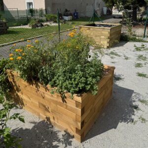 - Vyvýšené záhony a květinové záhony — díky výšce je snazší péče o rostliny bez nutnosti ohýbání, což je ideální pro seniory s omezenou mobilitou.