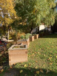 - Bez bariér, přístupnost pro všechny — i pro seniory na vozíčku nebo s omezenou pohyblivostí. Vyvýšené záhony, široké cesty, posezení, pohodlné přístupy a odpočinková místa. Dokonce i speciální záhony pro klienty na vozíku.