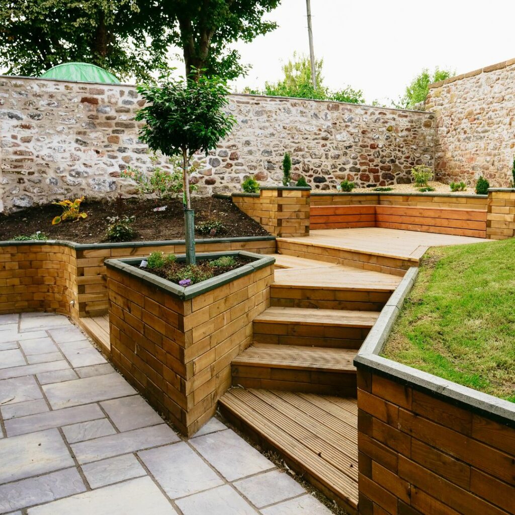 Svažité zahrady s WoodBlocX – terasy, zídky a schody bez betonu