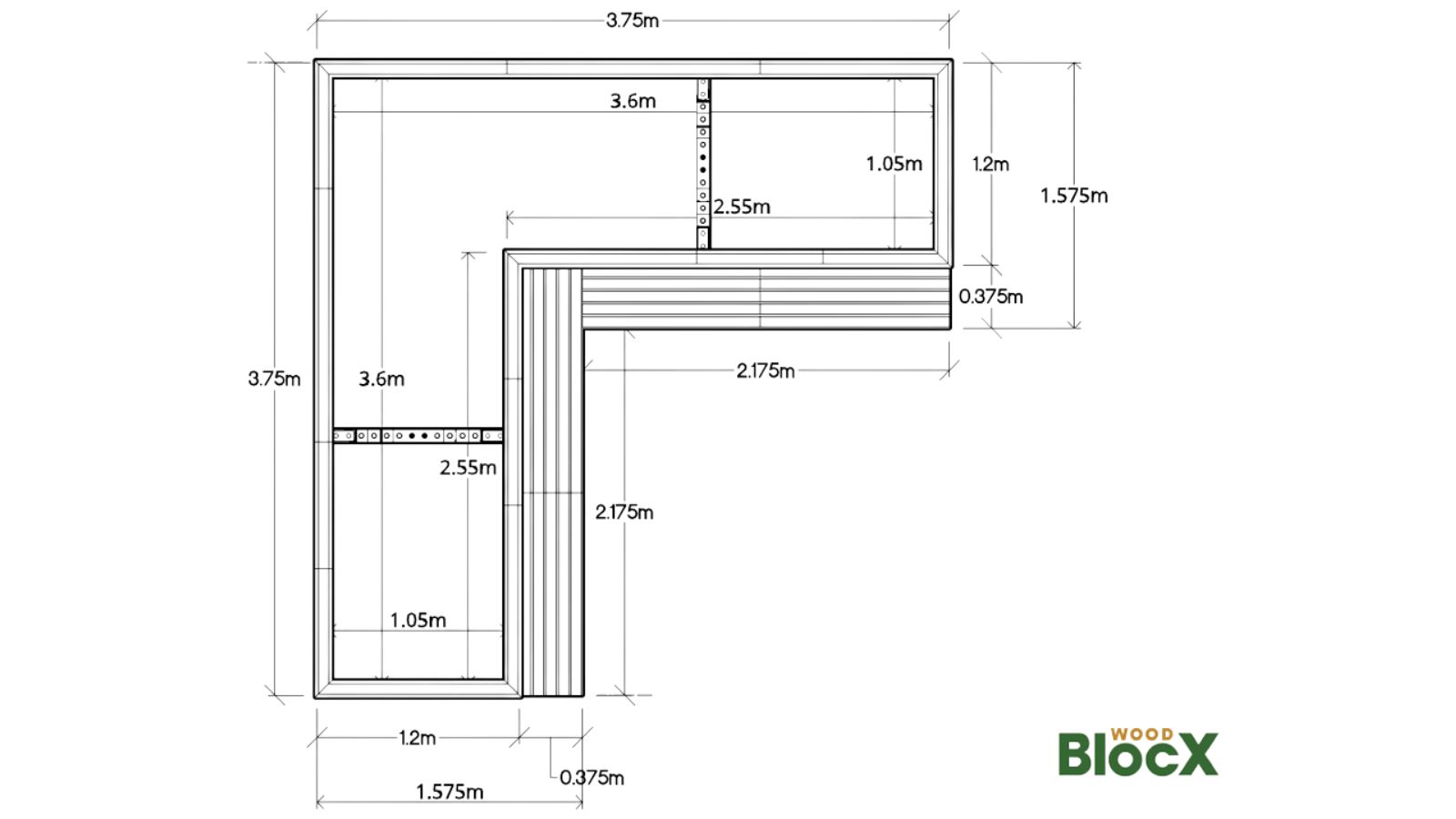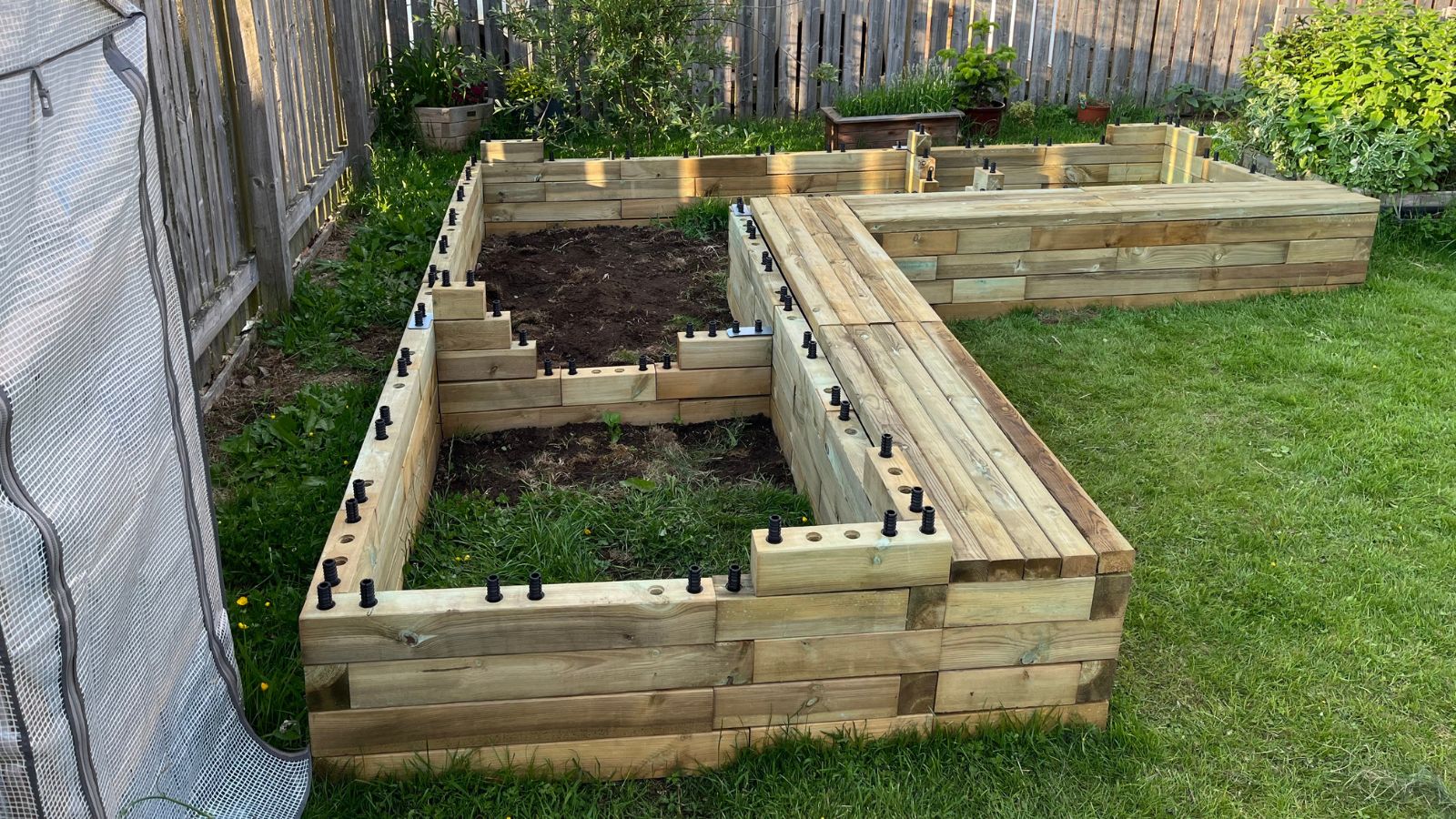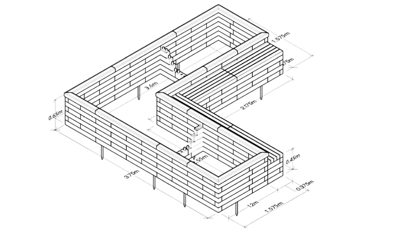 Tento projekt WoodBlocX zahrnuje velký vyvýšený záhon ve tvaru písmene L s integrovanou lavičkou, který je navržen tak, aby se perfektně vešel do rohu zahrady zákazníka. Díky stavebnicovému systému WoodBlocX je možné tvar i velikost přizpůsobit každé zahradě.