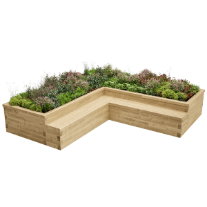 Náš velký záhon tvaru písmene L s integrovaným posezením je skvělou volbou, jak oživit rohový prostor a spojit krásu výsadby s praktičností. Kombinujte květiny, bylinky nebo okrasné keře a vytvořte si místo, kam se budete rádi vracet. Tento design, ideální pro zahrady i střešní terasy, nejen vizuálně vylepšuje prostor, ale také vytváří funkční společenskou zónu, která nenásilně spojuje zeleň a posezení.