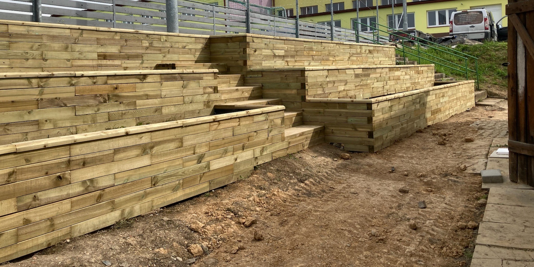 V jedné základní škole jsme s využitím našeho stavebnicového systému WoodBlocX proměnili svah u hřiště v krásnou kaskádu se schody a záhony, která slouží nejen k odpočinku, ale i jako přírodní učebna pod širým nebem.