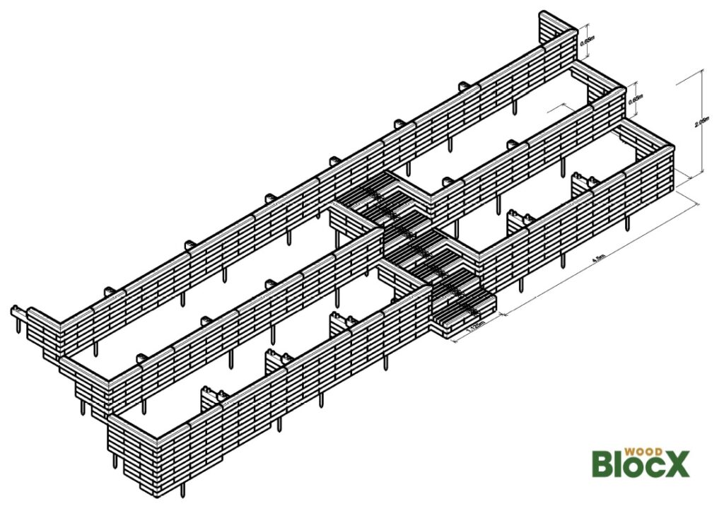 Díky stavebnicovému systému WoodBlocX lze navrhnout a postavit téměř jakýkoliv tvar – od záhonů a opěrných zídek přes kaskády až po schodiště a lavičky. Každý projekt můžeme připravit na míru prostoru i potřebám školy. Kontaktujte náš tým.