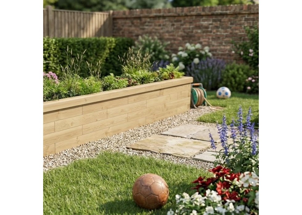 Dlouhý a úzký vyvýšený záhon se zajímavou cenovkou. Vynikající jako ohraničení vaší zahrady podél plotu nebo zdi. Vhodný pro pěstování rajčat nebo jahod.