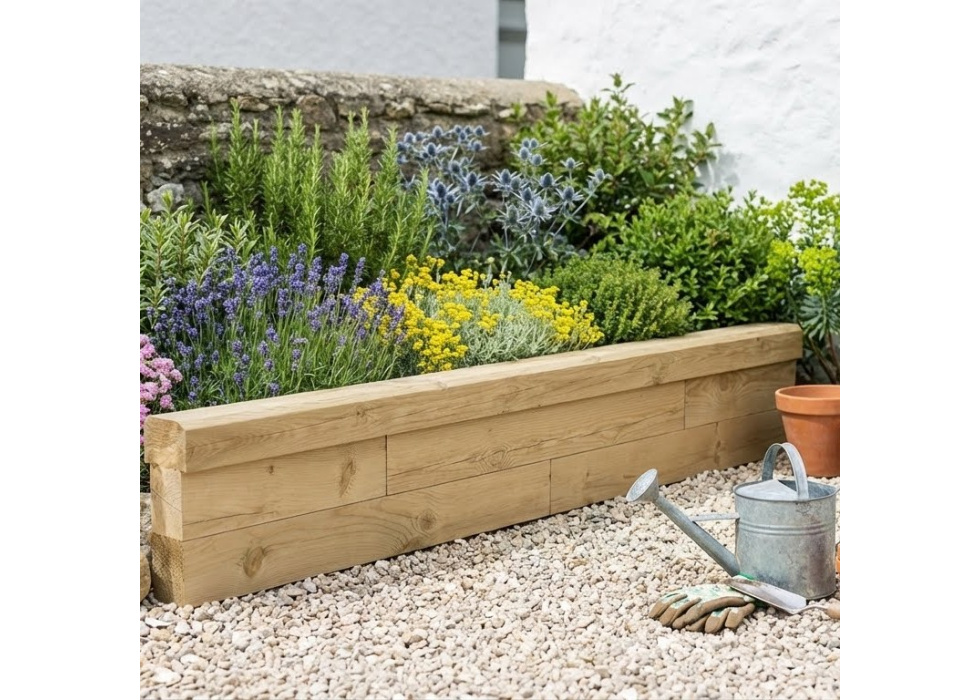 Obrubník, jehož délku si na našem kalkulátoru opěrných zídek můžete přizpůsobit svým potřebám.