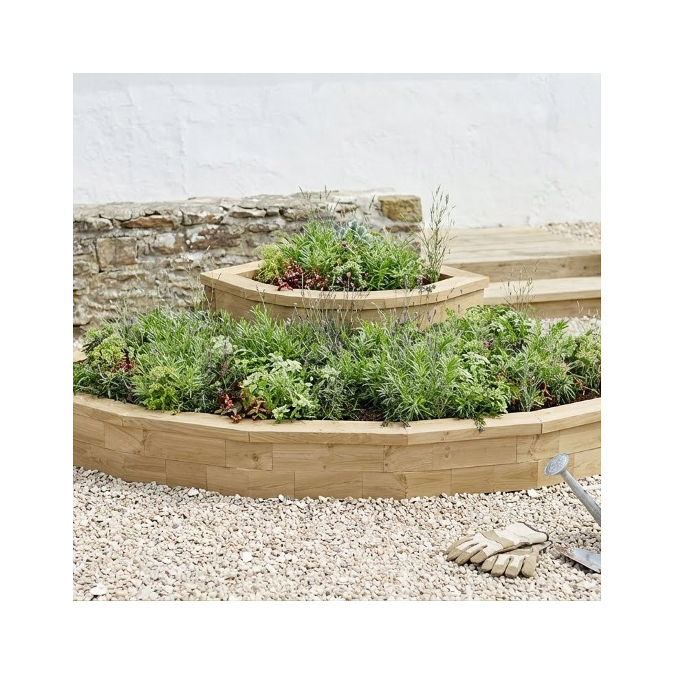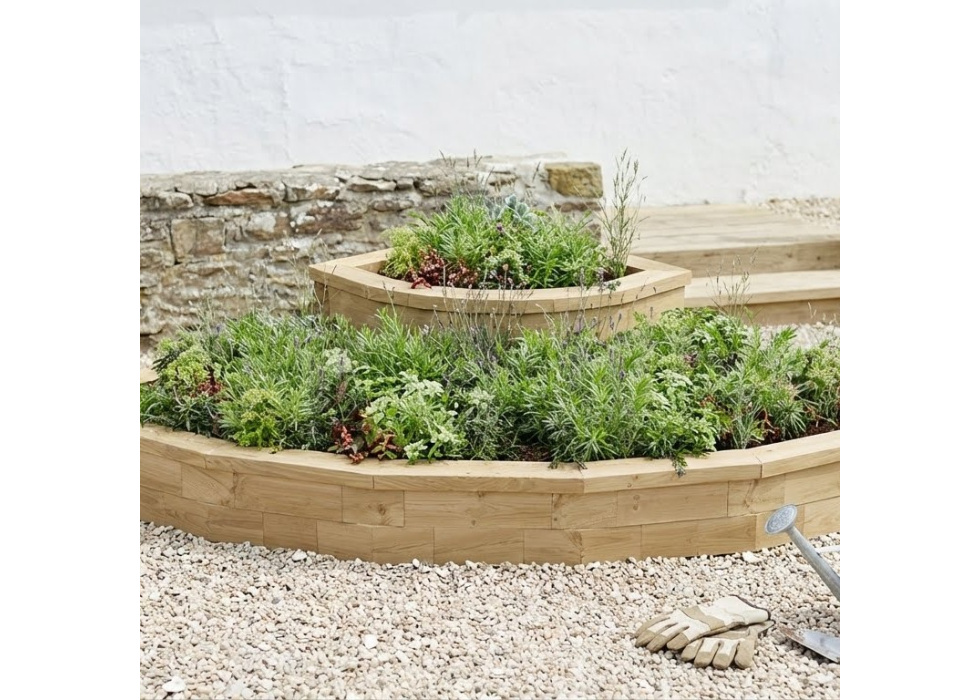 Skvělé a neotřelé řešení pro špatně využitelné rohy. Posazení pěstební plochy nad terén ušetří vaše záda a víceúrovňové členění umožní pustit uzdu vaší fantazii při volbě vhodného osázení. Snadno si sestavíte sami, ostatně jako cokoliv dalšího od WoodBlocX.