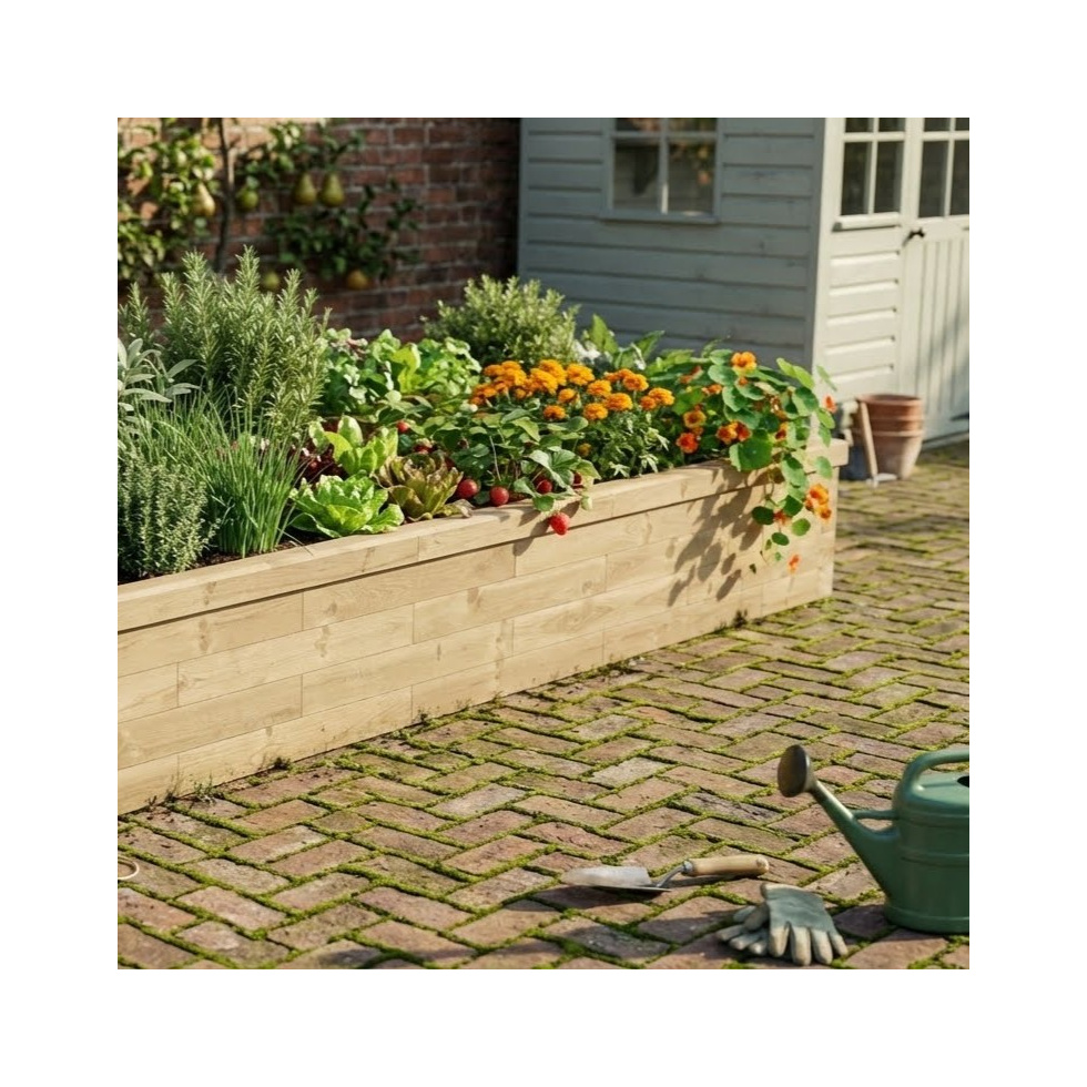 Obdélníkový vyvýšený záhon nabízí velkorysý prostor pro pěstování čehokoliv. Postavit si záhon z WoodBlocX je mnohem snazší, než z kulatin nebo těžkých (a většinou toxických) pražců. Díky vnitřním opěrným konstrukcím je záhon neporovnatelně pevnější a odolnější proti vyboulení stěn, než varianta z prken nebo fošen.