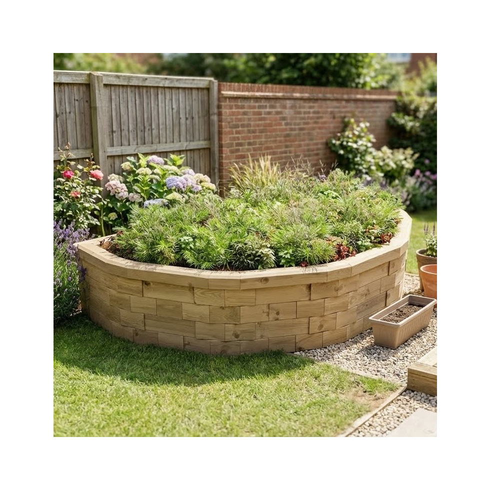 Tento malý půlkruhový záhon je ideální pro zjemnění klasických lineárních zahrad či teras, ho lze kombinovat s dalšími tvary a vytvořit tak zajímavé kompozice vyvýšených záhonů. Nabízíme ho i v menší verzi.