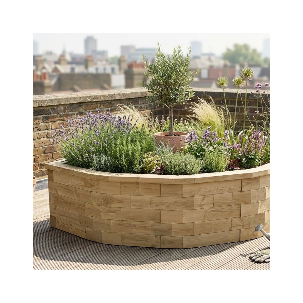 Rohový čtvrtkruhový vyvýšený záhon 1,5 x 1,5 x 0,55m