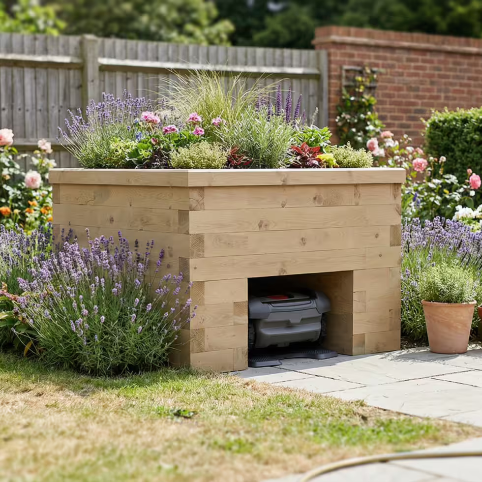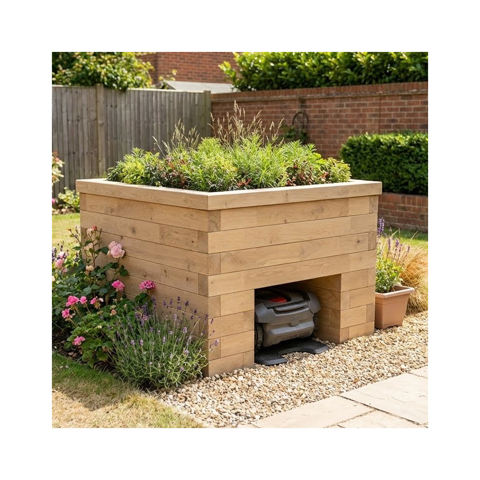 Parkování pro robotickou sekačku s květináčem 1.2 x 1.125 x 0.85 m
